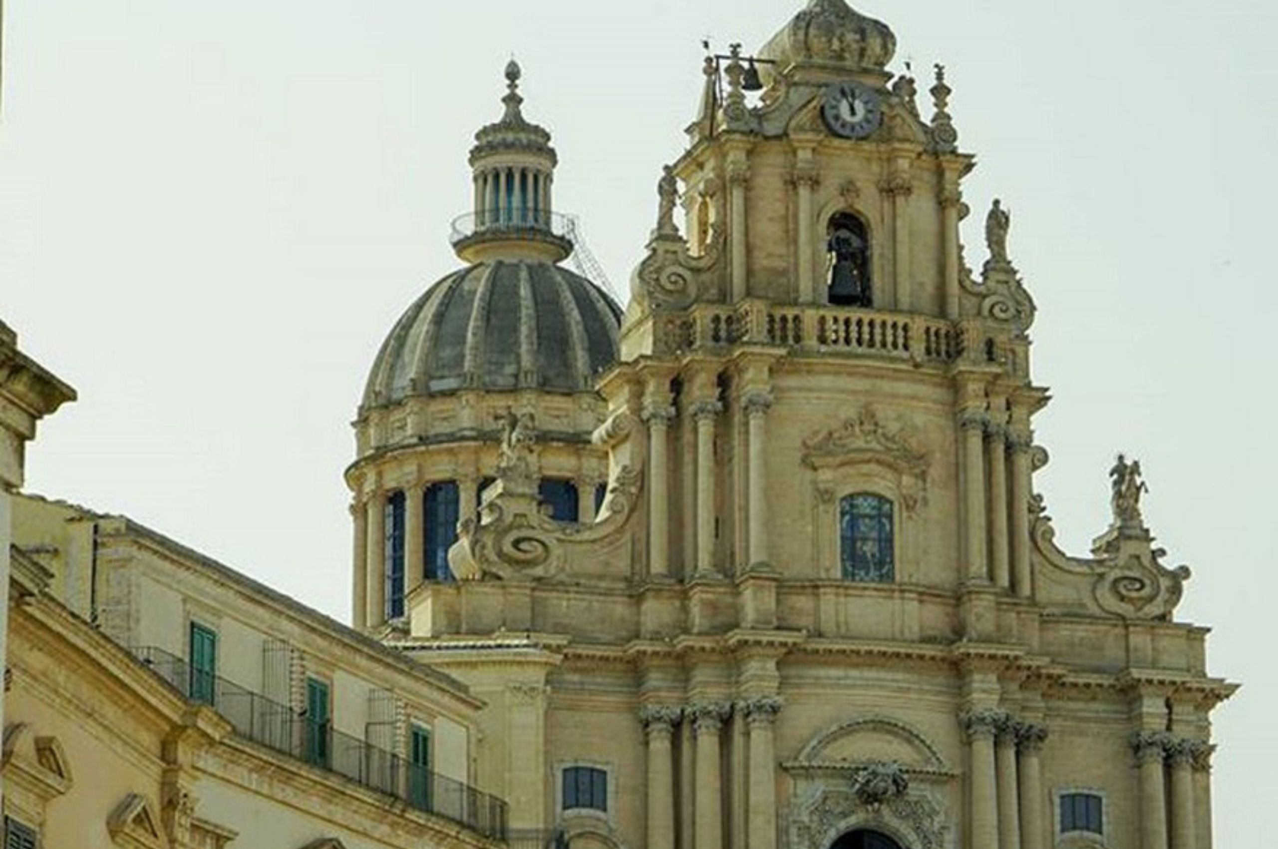Il basamento delle colonne è fatto con un particolare tipo di pietra, «la pietra pece, che serve anche per evitare che sale l’umidità nel terreno. Abbiamo i progetti originali di Gagliardi, che sono conservati al Museo del Duomo e lì si può fare un confronto tra quello che è stato realizzato e quello che esiste veramente. L’unica cosa che differisce dal progetto di Gagliardi è la cupola, che era prevista molto più piccola. Si aspettò che Gagliardi morisse e si bloccarono i lavori. Fu trovato un altro grande architetto, Sebastiano Ittar, che progettò l’attuale cupola neoclassica con 22 doppie colonne che sorreggono a loro volta una cupola con un cupolino con altre 22 doppie colonne. Questa opera fu realizzata da un capo mastro ragusano, che era Carmelo Cultraro, e fu ultimata nel 1810».