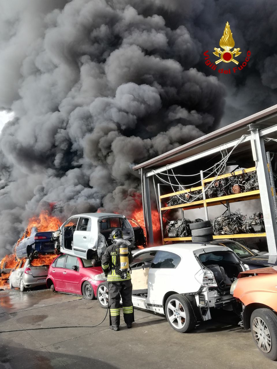 Il rogo che sta interessando un deposito di Autodemolizioni, con all’interno un centinaio di autovetture sta severamente impegnando le squadre VF di Caltagirone, Catania Sud, e due autobotti arrivate dalla centrale di Catania e dall’aereoporto, quest’ultima di 25.000 litri.