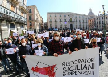 Stamattina in piazza Università a Catania il movimento Ristoratori Siciliani Indipendenti, rappresentato da 500 persone, nel pieno rispetto delle attuali ...