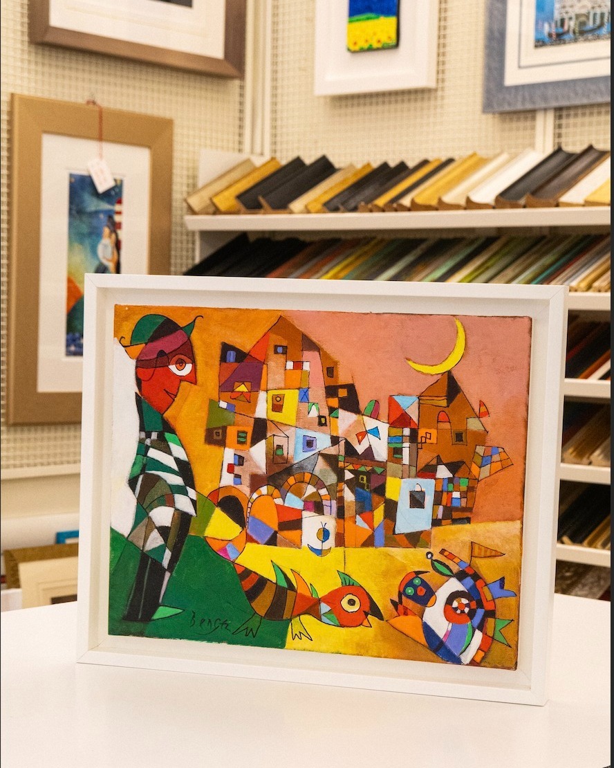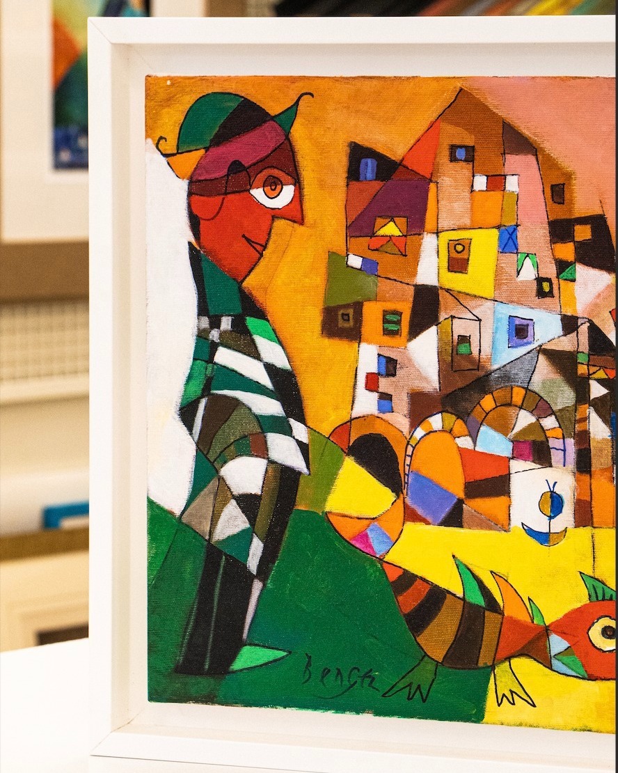 Le case di Positano sembrano sciogliersi nel mare come zucchero in una bevanda estiva. Le linee architettoniche si curvano e si intrecciano in una danza cromatica che non vuole imitare il vero, ma trasformarlo. È qui che si riconosce la mano di Bengez, artista croato dalla formazione rigorosa, ma dallo sguardo immaginifico, capace di fondere tecniche solide e visioni quasi metafisiche.